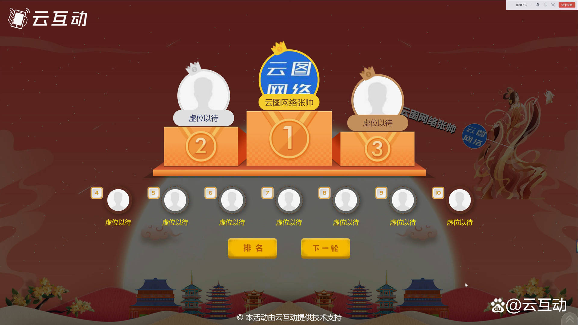 除了抽獎(jiǎng)外,我們還可以利用大屏幕進(jìn)行一些互動(dòng)游戲,可以讓現(xiàn)場的用戶都參與進(jìn)來,并根據(jù)活動(dòng)排名派發(fā)一些禮品,非常適合活動(dòng)中間穿插進(jìn)行,每次都可以掀起一個(gè)小高潮。
