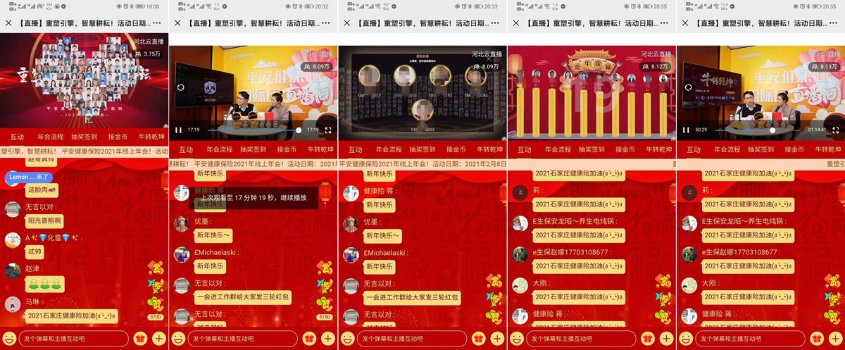 云互動/云圖互動平臺為平安健康保險石家莊機構(gòu)2021年線上直播年會提供微信簽到,3D簽到,巨幕抽獎、接金幣、微信直播互動等互動服務(wù)技術(shù)支持。