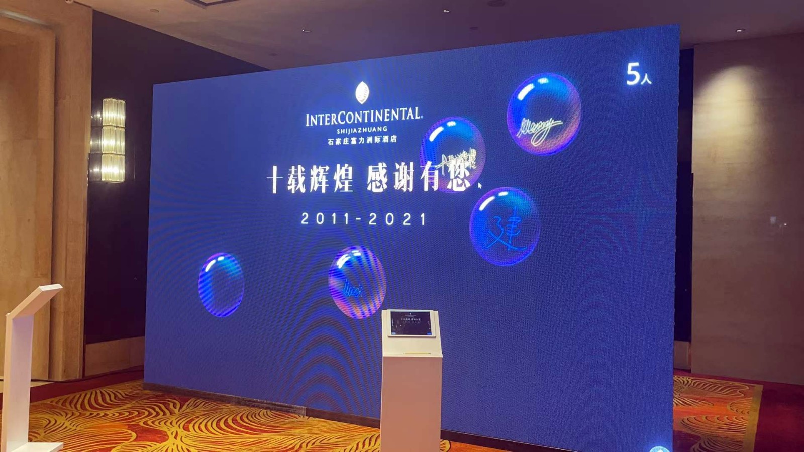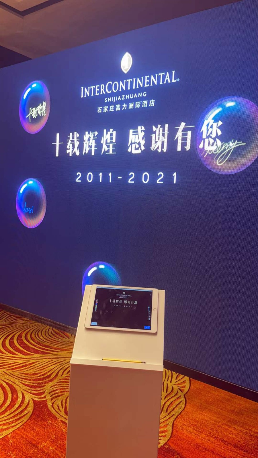 云互動(dòng)為石家莊富力洲際酒店十周年慶典提供泡泡簽到、手寫簽到、巨幕抽獎(jiǎng)等現(xiàn)場(chǎng)互動(dòng)技術(shù)支持服務(wù)。