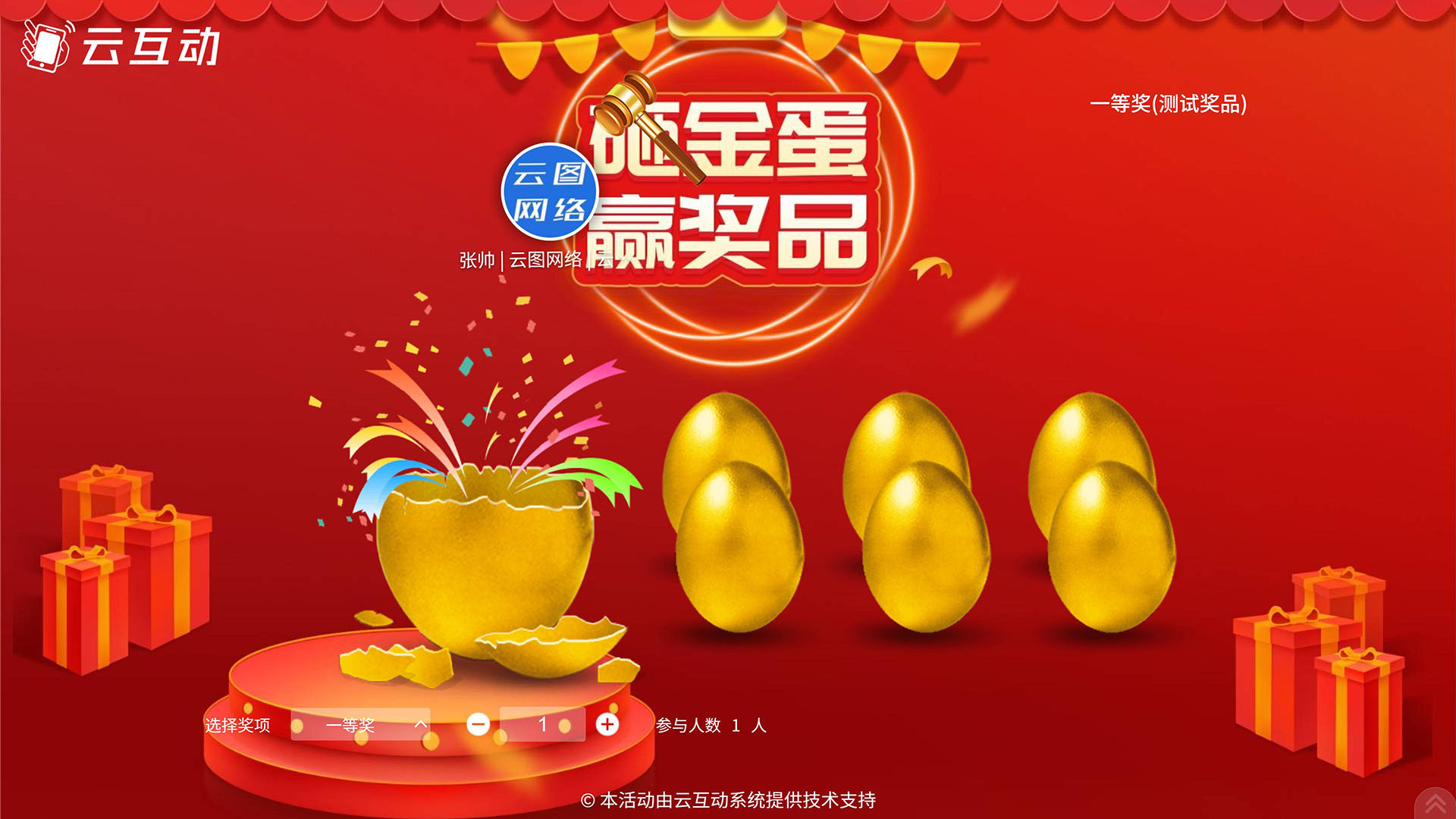 總的來(lái)說(shuō),云互動(dòng)系統(tǒng)的砸金蛋功能是一款操作簡(jiǎn)單、互動(dòng)性強(qiáng)、視覺效果出色的抽獎(jiǎng)工具,非常適合用于各類現(xiàn)場(chǎng)活動(dòng),提升參與感與品牌影響力。